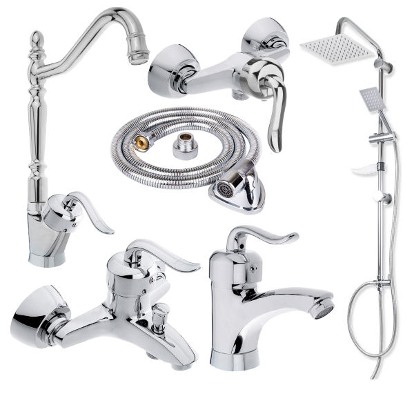 ست شیرآلات فراست پویا مدل قاجاری به همراه علم دوش حمام و شلنگ توالت