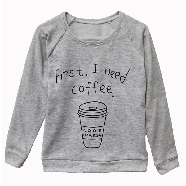 سویشرت زنانه مدل تو کُرکی طرح کافه رنگ طوسی